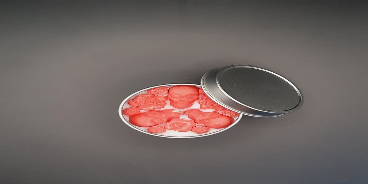 ● verziert mit Totenköpfen & Blumen aus Wachs & Kerzenfarbstoff