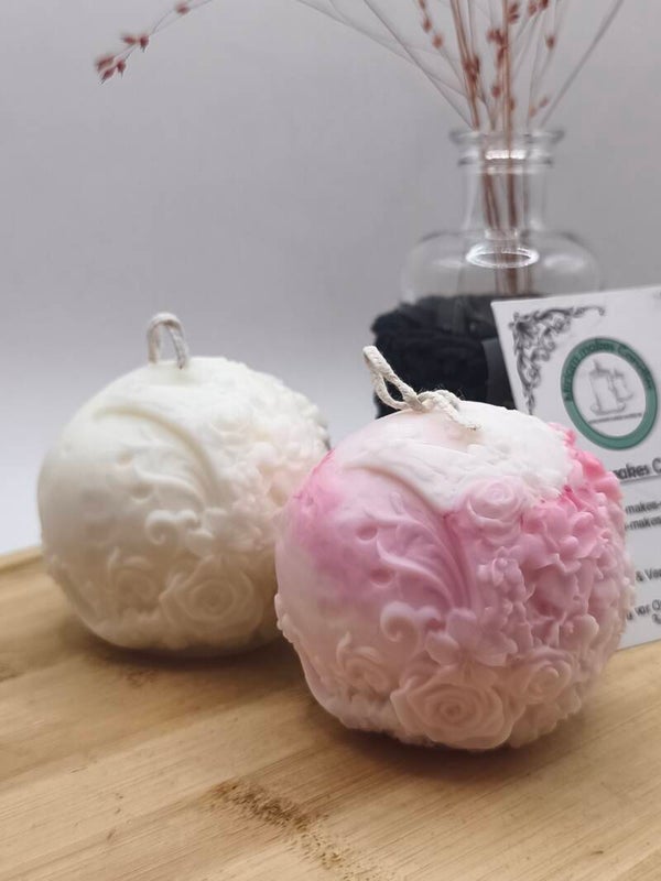 Standkerze in Form des Mondes mit Blumen verziert